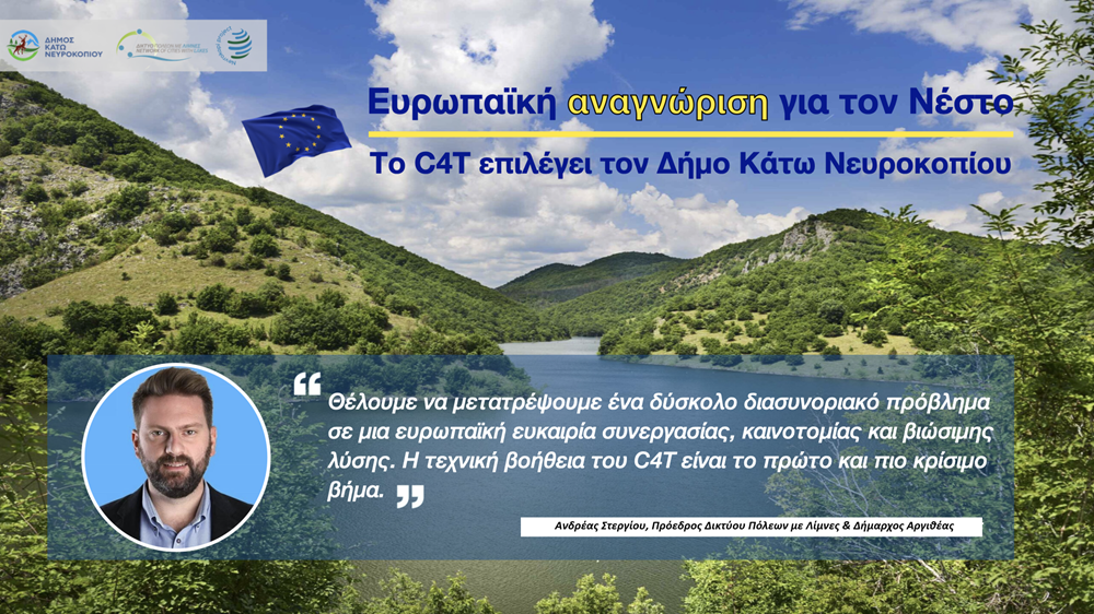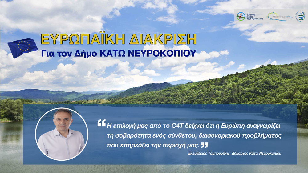 Μια σημαντική ευρωπαϊκή διάκριση πέτυχε ο Δήμος Κάτω Νευροκοπίου, σε συνεργασία με το Δίκτυο Πόλεων με Λίμνες, καθώς επιλέχθηκε από τον μηχανισμό C4T – Cities and Regions for Tomorrow της DG REGIO για την παροχή εξειδικευμένης τεχνικής βοήθειας.
